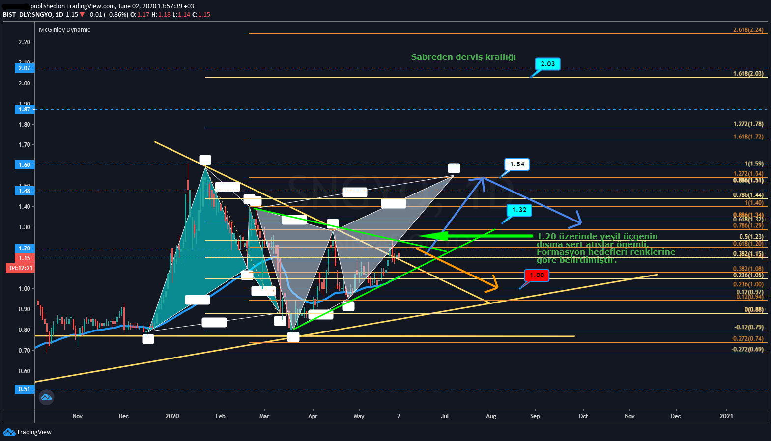 Beyaz tona bakınca 1,20 sevieyelerinde izlemeye başlarsak; yeşil üçgenin dışına doğru mumlar daha uzun şekilde sert hareketlerle yükselirse ilk hedef 1,54. 1,32 ise sanırım 1,54 sonrası olası gerileme.